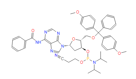 中文名称5'-O-(4,4'-二甲氧基三苯基)-N6-苯甲酰基-2'-脱氧腺苷-3'-(2-氰乙基-N,N-二异丙基)亚磷酰胺